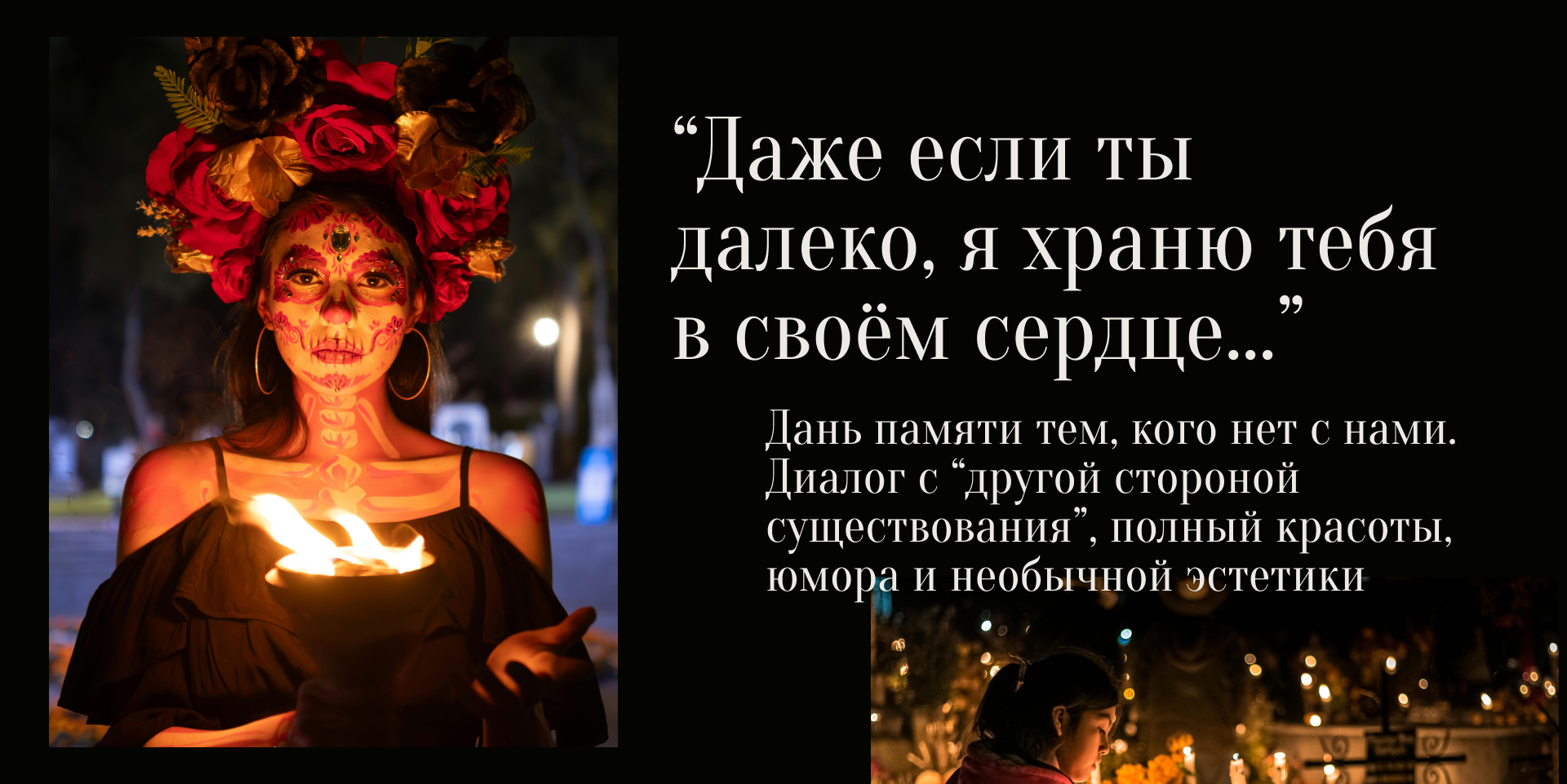Конец октября – время, когда Мексика готовится ко Дню Мертвых.Пожалуй, это главнейший и самый уникальный праздник всей Центральной Америки, корни которого уходят в глубину тысячелетий, более того – он смело может претендовать на звание самого красочного и яркого фестиваля планеты. Это не просто карнавал и не просто дань памяти об ушедших – это яркий диалог с “другой стороной существования”, полный красоты, юмора и необычной для нас эстетики.